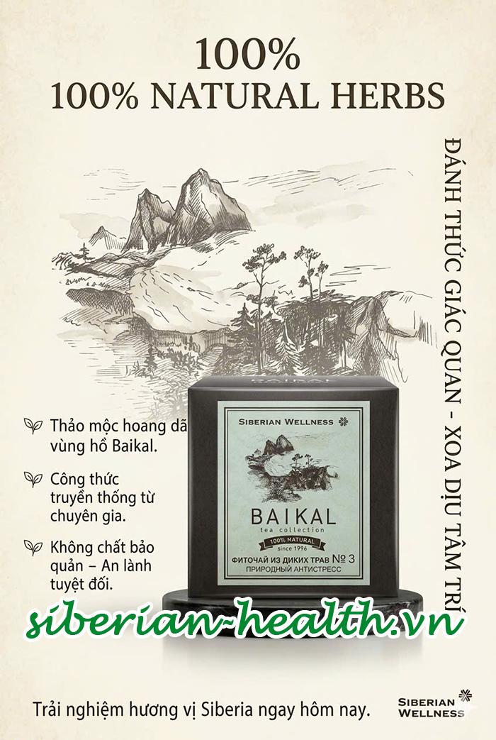 Đây không phải là trà xanh hay trà đen bình thường đâu bà ơi. Nó là sự kết hợp của 7 loại thảo mộc quý hiếm, được thu hái thủ công tại vùng núi Altai và đảo Olkhon. Mục tiêu duy nhất của em nó là: Vỗ về hệ thần kinh và đưa bà vào giấc ngủ tự nhiên nhất.